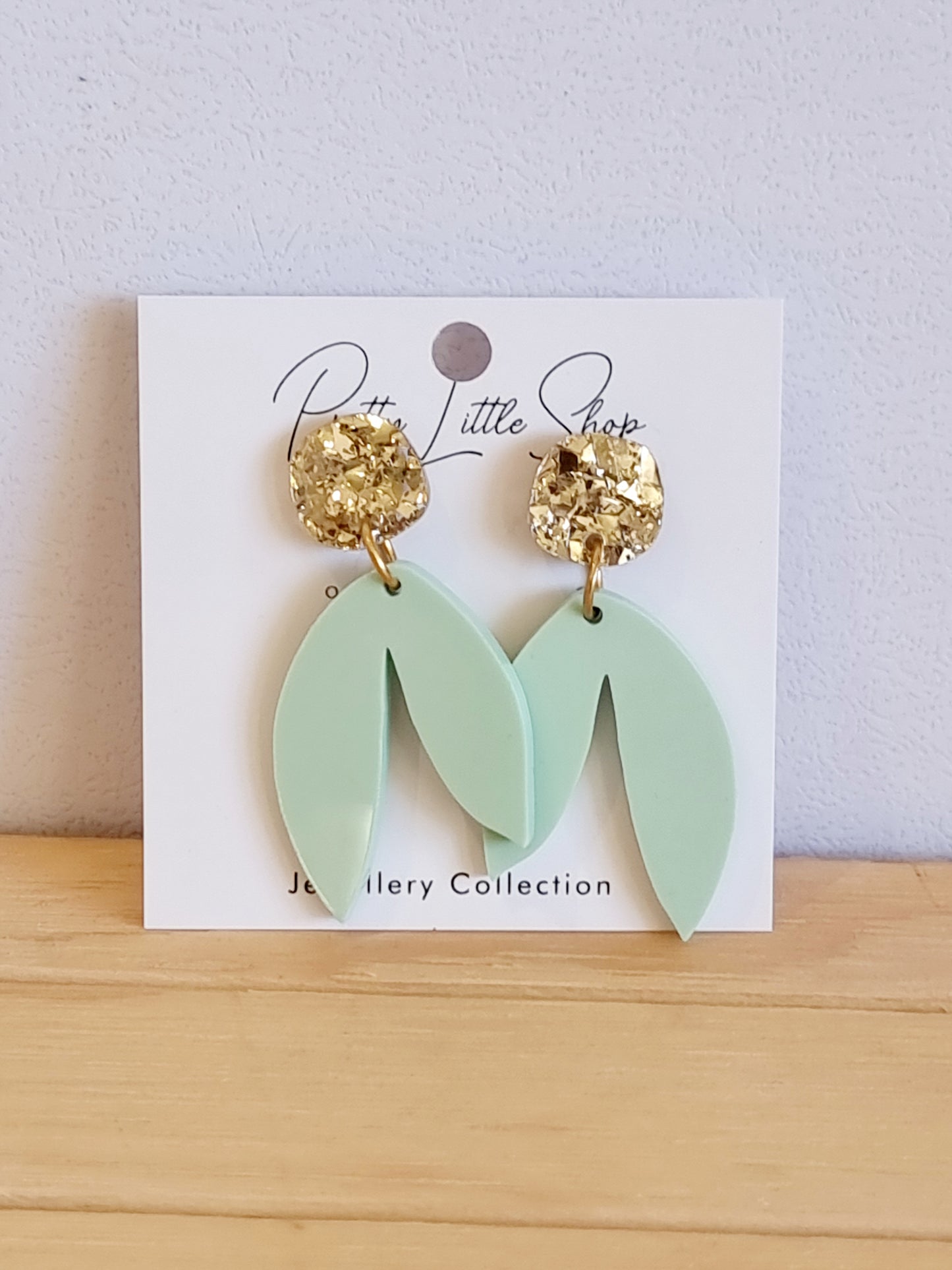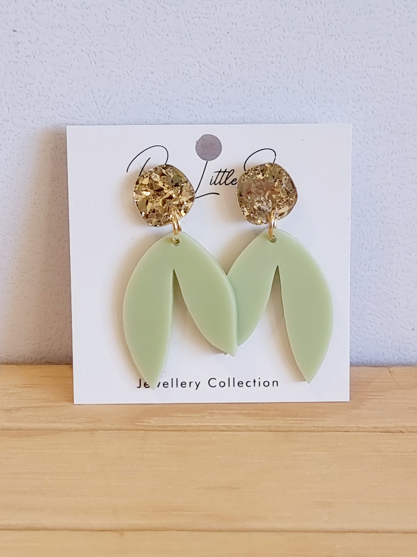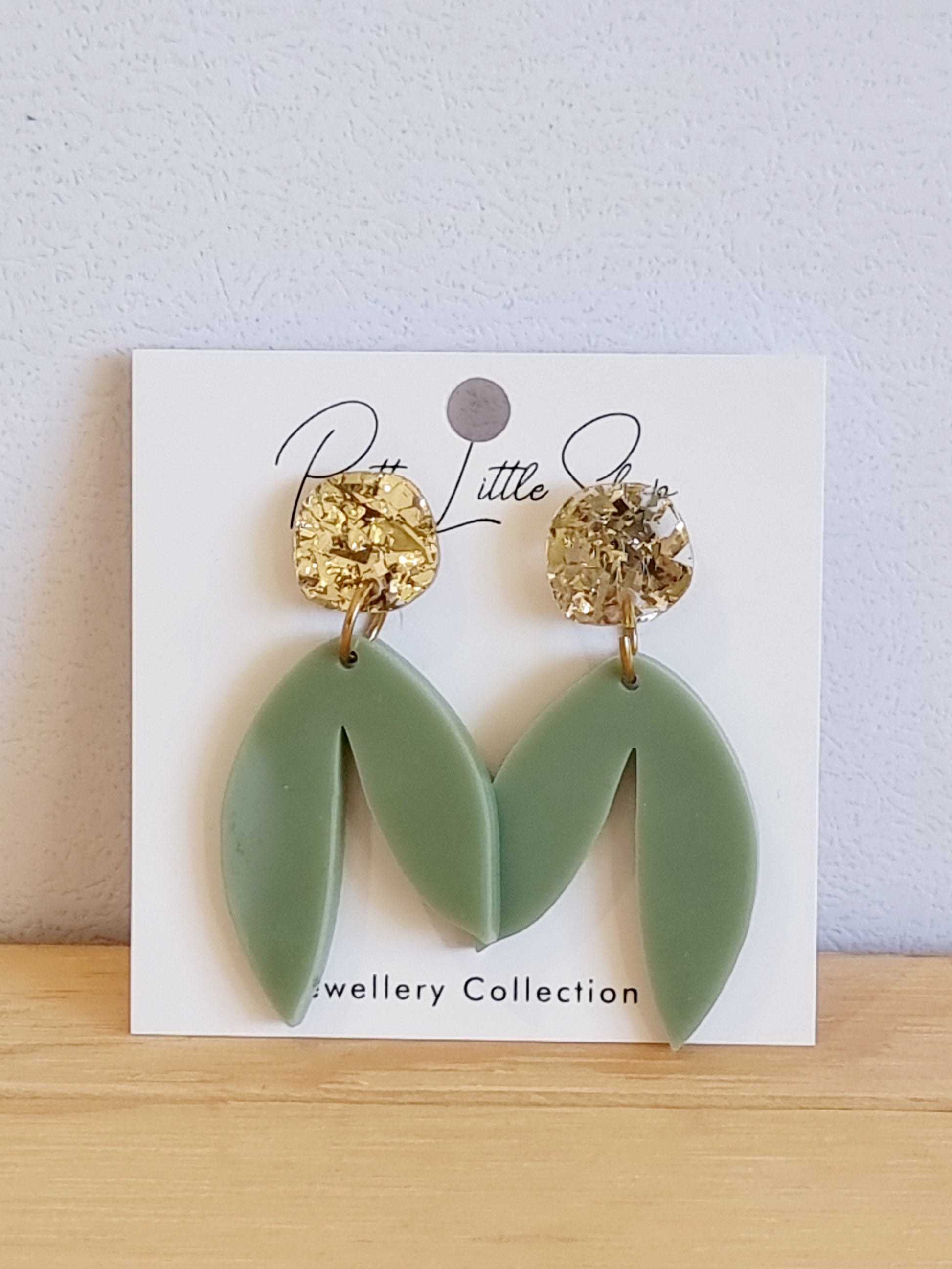 A stylish, elegant and fun pair of earrings right here ! Dress up or dress down either way these little beauties will go with any outfit you choose ! Different shades of green with gold crystal look topper.